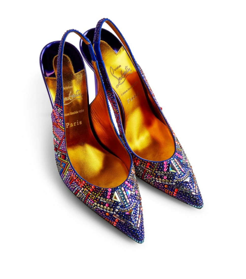 It was his assistant painting her nails that first gave Christian Louboutin the idea for the red lacquered sole, and the motif has since become one of fashion’s most distinctive symbols of exclusivity. However, for the Discosling pumps, the real star of the show is the intricate multicolour strass embellishment adorned over the leather construction. This slingback style sees a sculptural silhouette with stiletto heels – showcasing the glamorous aesthetic of the Maison.Please note, Christian Louboutin’s signature lacquered soles will wear out with use; this is normal wear and tear and is not considered to be a manufacturing defect. Please try these shoes on a carpeted surface, as any damage to the soles may prevent us from accepting returns.