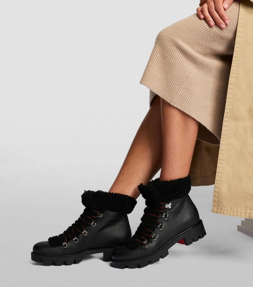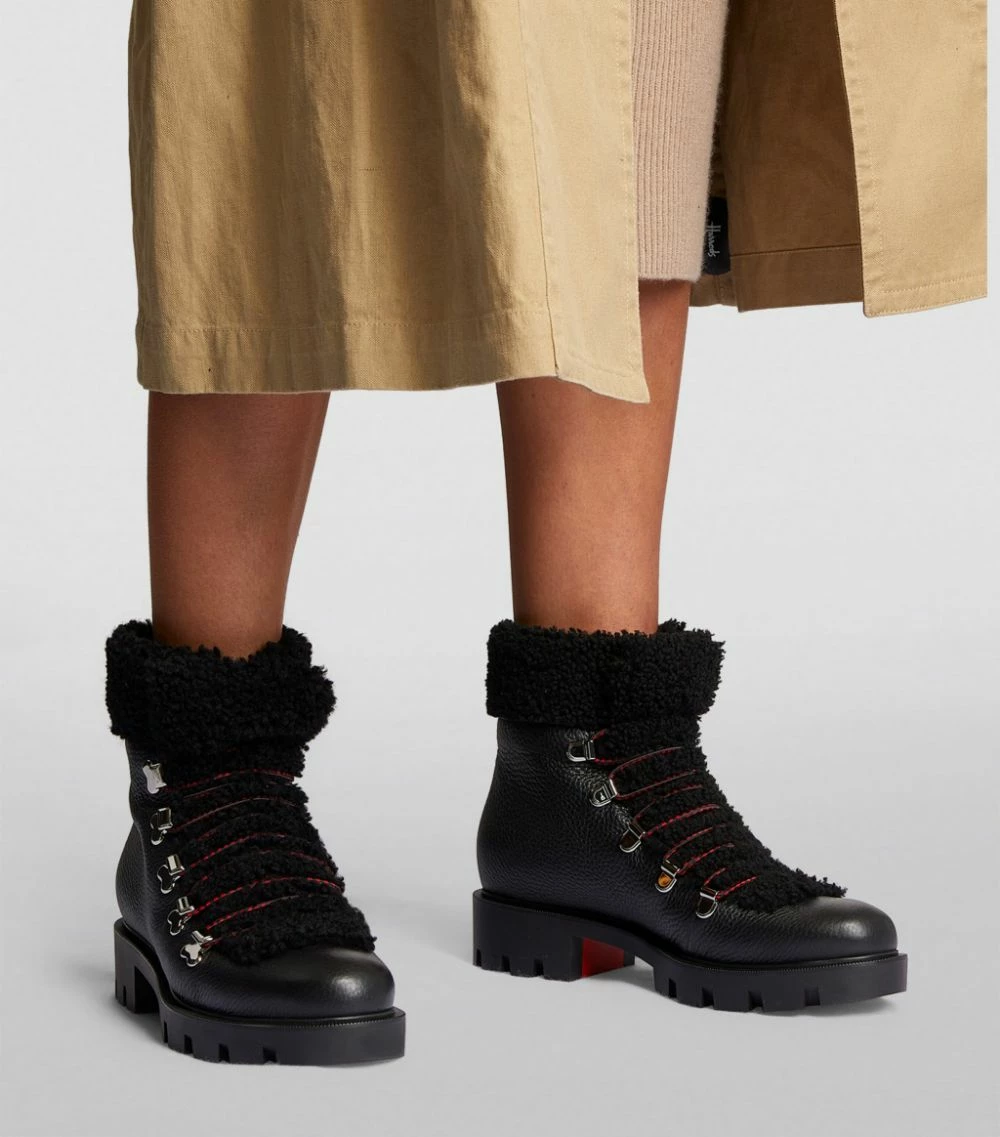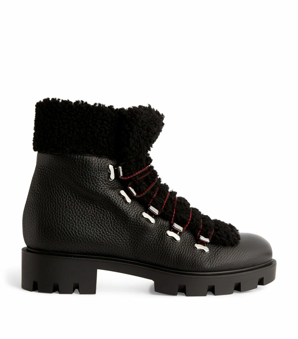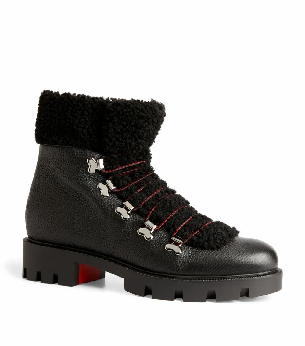 Reimagining a classic silhouette, the Edelvizir ankle boots from footwear pioneer Christian Louboutin are characterised by the contrasting textures of the composition – note, for example, the shearling trims that bring a signature touch to the leather-made construction. Further detailed with silver-tone hardware, this timeless design will make a sleek addition to your shoe collection.