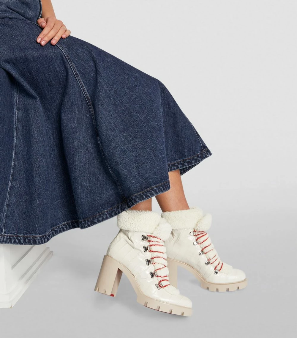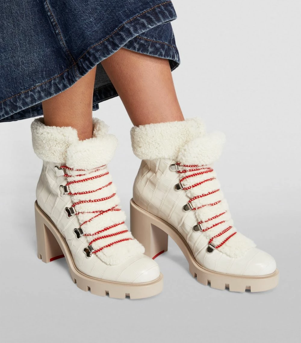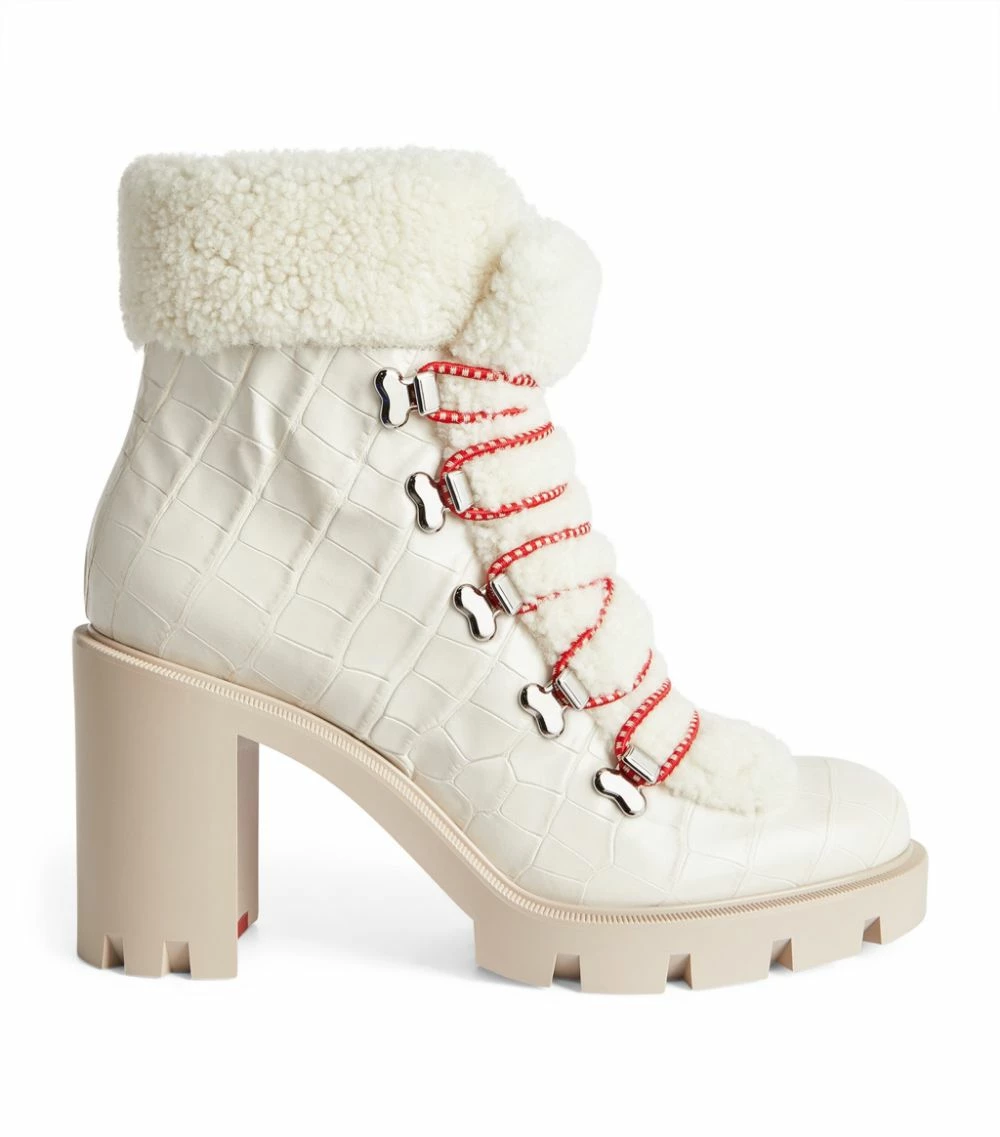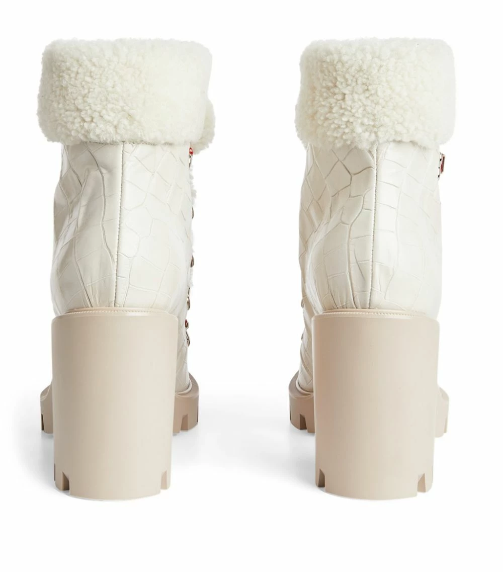 Reimagining a classic silhouette, the Edelvizir ankle boots from footwear pioneer Christian Louboutin are characterised by the contrasting textures of the composition – note, for example, the shearling trims that bring a signature touch to the leather-made construction. Further detailed with silver-tone hardware, this timeless design will make a sleek addition to your shoe collection.