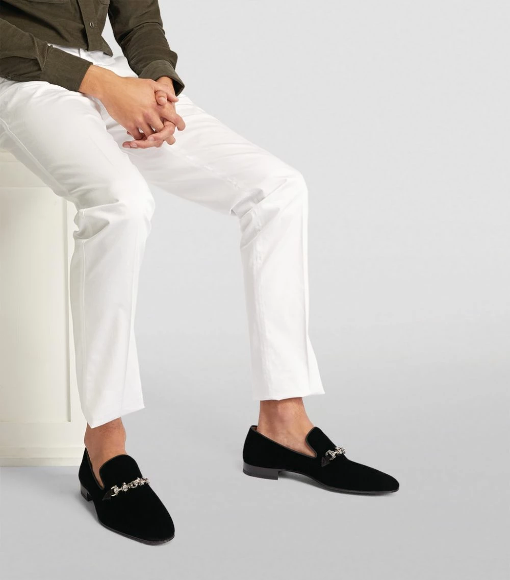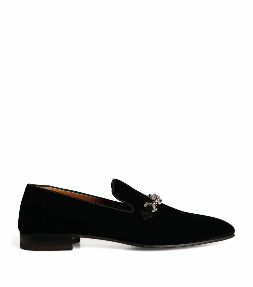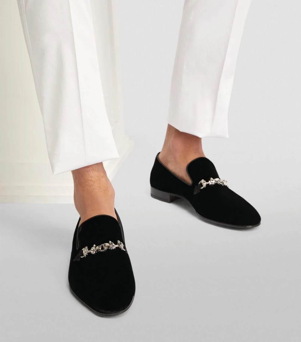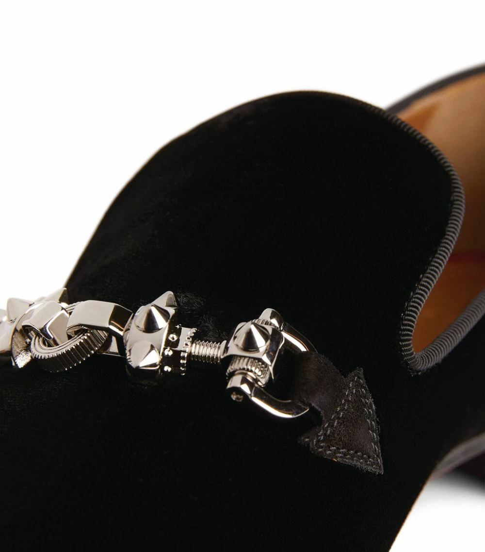 The Equiswing moccasin loafers by Christian Louboutin confidently walk the link between elegance and gothic glamour. A silver-tone strap spotlighting the brand’s iconic spikes is placed atop a luxurious velvet upper, while the legendary red sole completes them with utter sophistication.