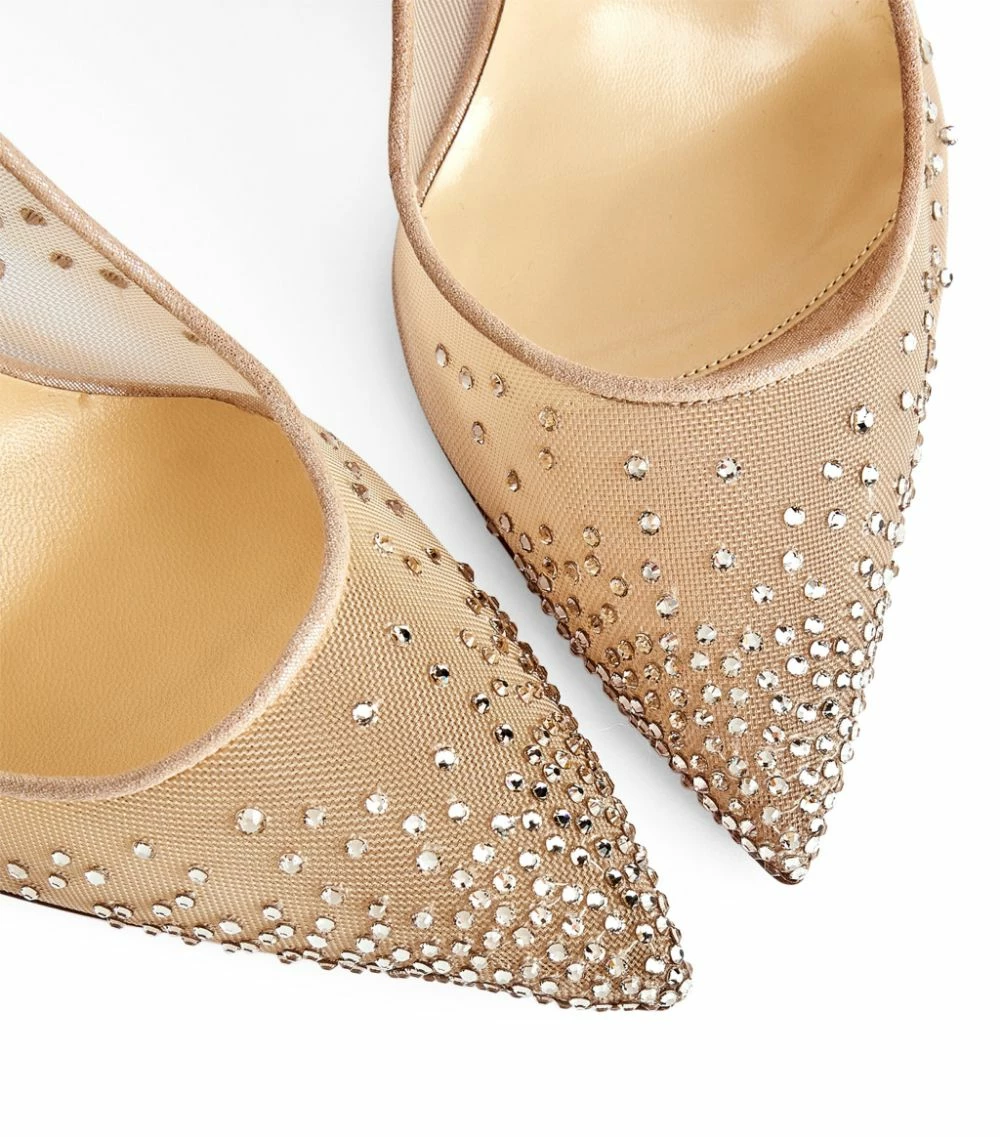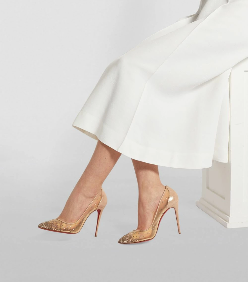 There’s no questioning the glamorous appeal of Christian Louboutin’s Follies Strass pumps thanks to an abundance of striking features that beg to be seen after dark. Beginning at the sparkling embellished toe, the profile curves sensually upwards with swathes of tulle-like mesh before culminating in a suede stiletto heel. It’s all poised atop a lacquered red sole – a detail that ensures the pair is nothing short of iconic.