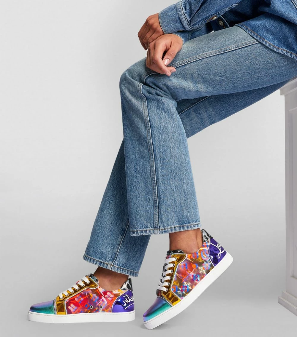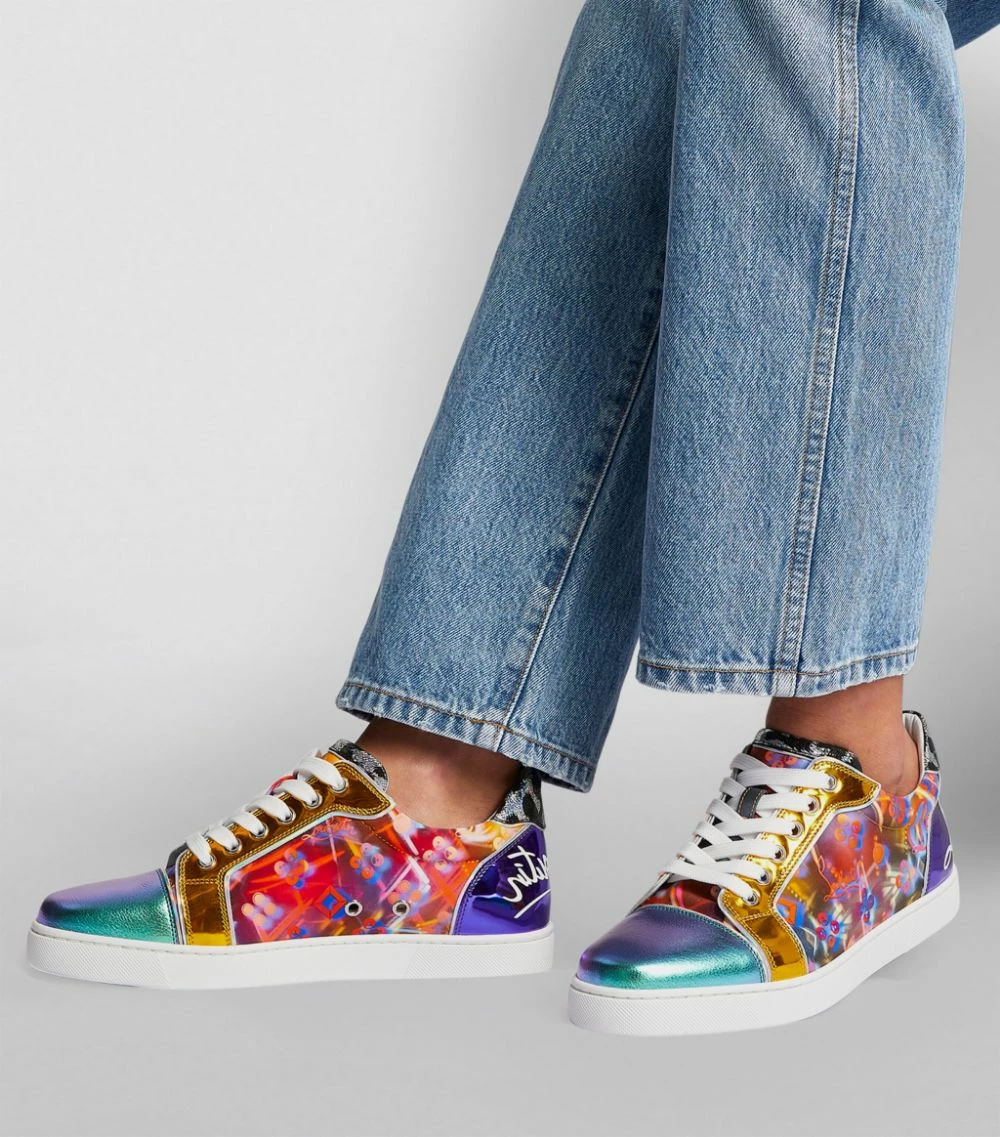 The Fun Vieira sneakers from pioneering footwear label Christian Louboutin are a reliable style that stays true to the Maison’s luxury ethos. Imagined with a classic rubber sole, the leather-crafted design sees a multitude of textures – from the grained metallic toe to the multicoloured patent motif – making this pair the playful addition that was missing in your repertoire.