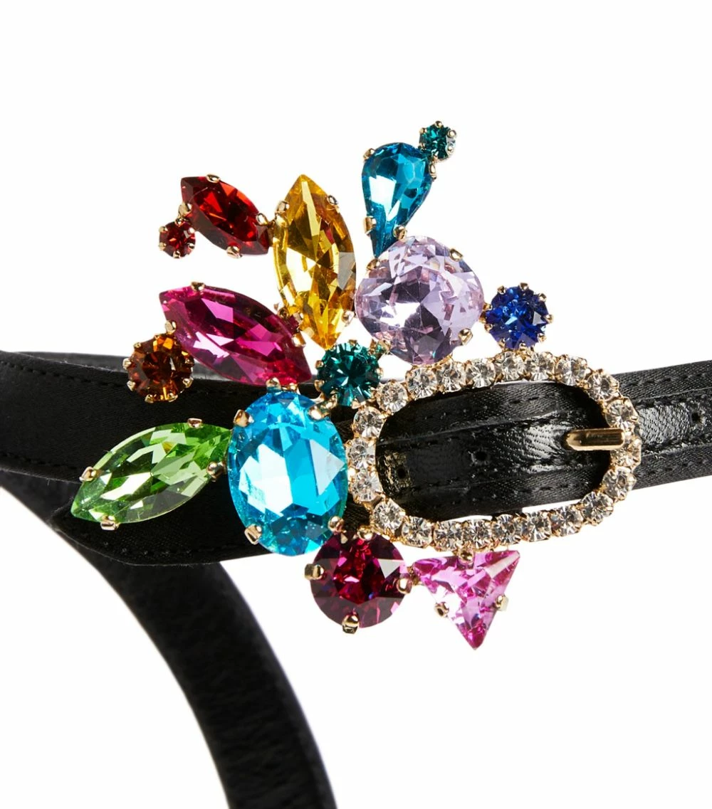 The Goldie Joli sandals from Christian Louboutin delicately bridge the gap between minimalism and maximalism. Enhanced and exposed, the foot follows the natural curve that’s granted from the stiletto heel, while the satin crepe straps provide support. In contrast, the buckle closure is encrusted with multicoloured rhinestones – bringing the feminine touch the Maison is renowned for.Please note, Christian Louboutin’s signature lacquered soles will wear out with use; this is normal wear and tear and is not considered to be a manufacturing defect. Please try these shoes on a carpeted surface, as any damage to the soles may prevent us from accepting returns.