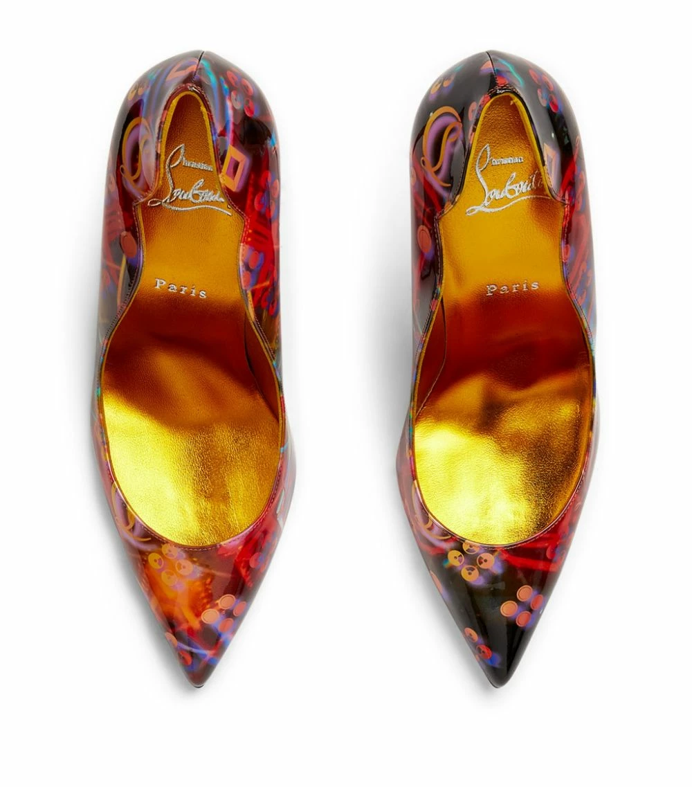 If there’s one thing Christian Louboutin knows how to execute to perfection, it’s a head-turning entrance piece that can only be likened to that of a modern fairytale. The Hot Chick pumps are envisioned through a multicoloured patent leather composition – showcasing the silhouette’s iconic curves, pointed toe and that flash of red that will be recognised in both an office and dancefloor setting.Please note, Christian Louboutin’s signature lacquered soles will wear out with use; this is normal wear and tear and is not considered to be a manufacturing defect. Please try these shoes on a carpeted surface, as any damage to the soles may prevent us from accepting returns.