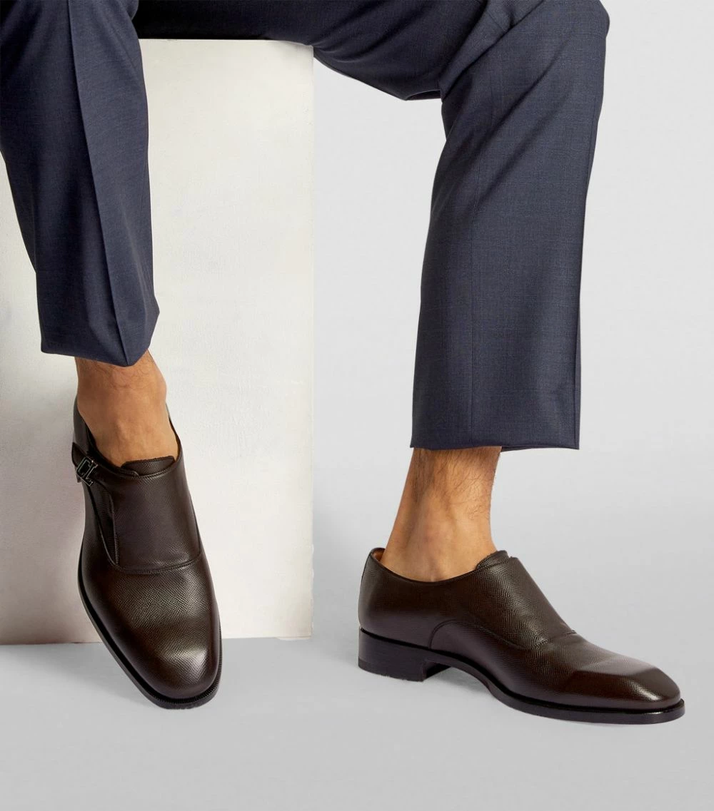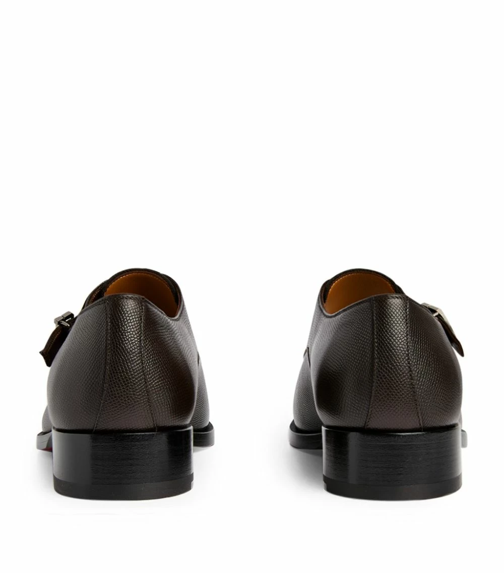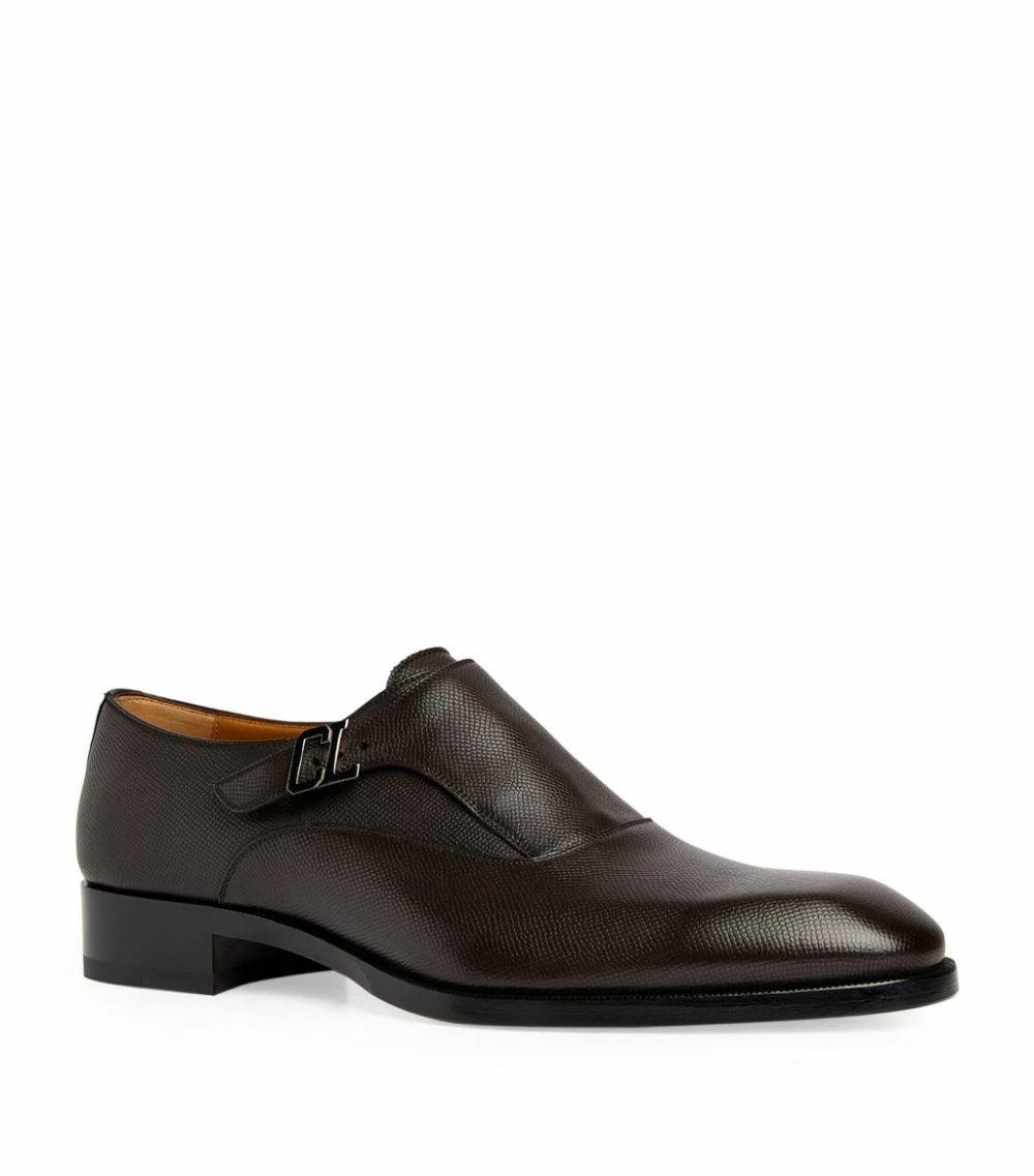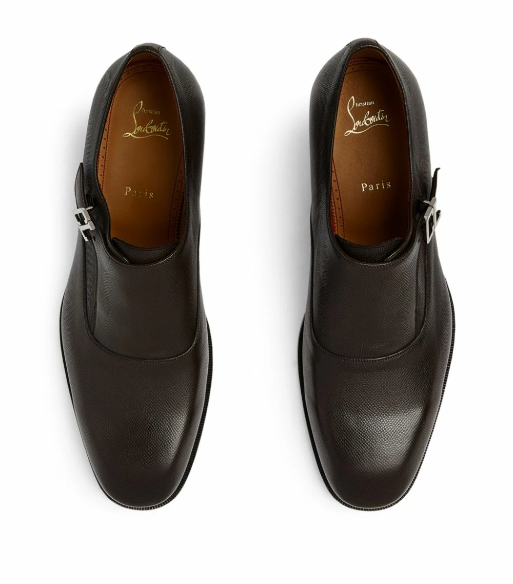 Finish off your most suave formalwear looks with the Christian Louboutin John Flat shoes – they’re crafted from luxuriously smooth leather to ensure they embody the same sophistication as your finest suiting. Maintaining an understated and refined profile, the silhouette is adjustable via a buckle that guarantees both comfort and practicality. Please note, Christian Louboutin’s signature lacquered soles will wear out with use; this is normal wear and tear and is not considered to be a manufacturing defect. Please try these shoes on a carpeted surface, as any damage to the soles may prevent us from accepting returns.