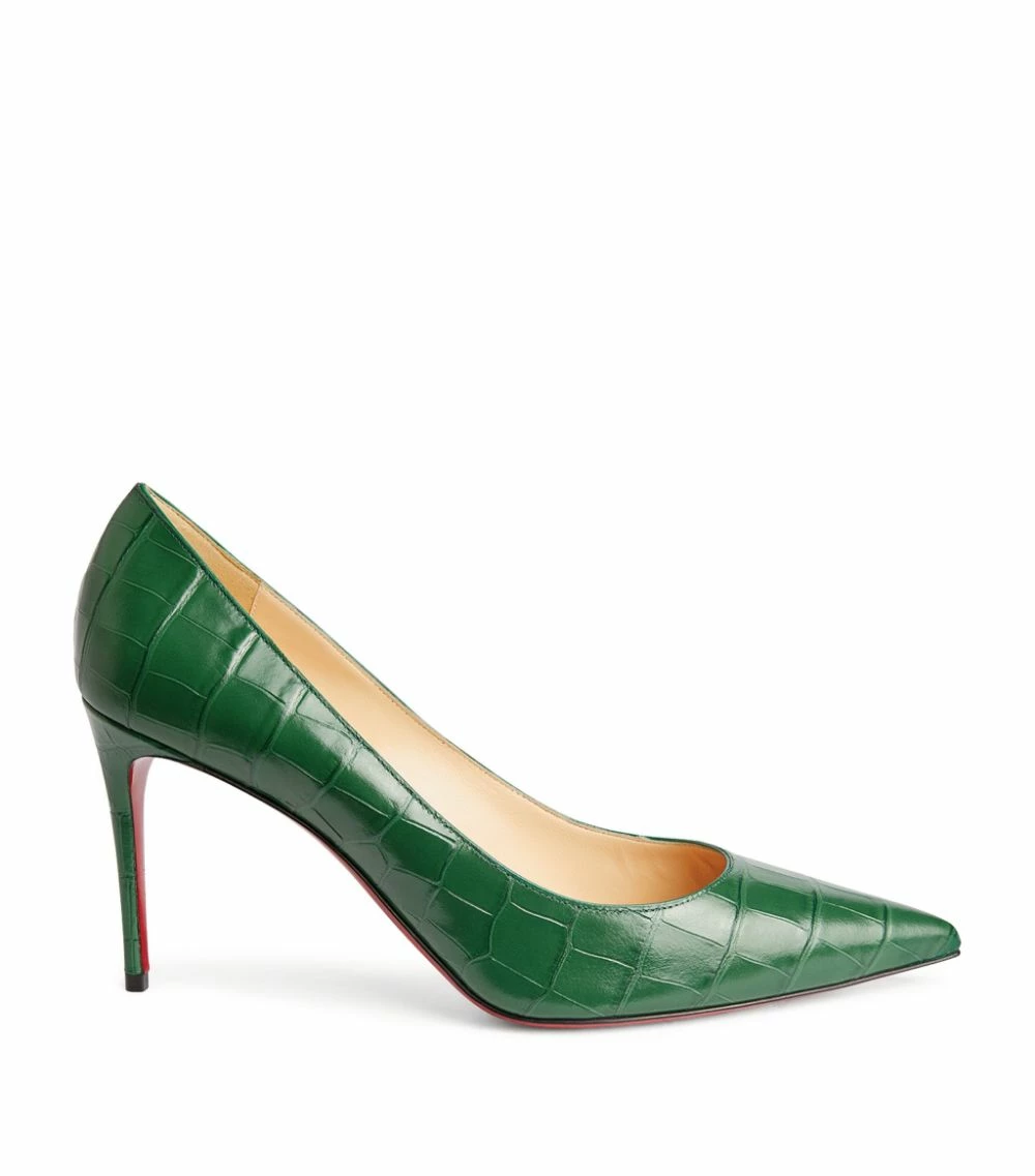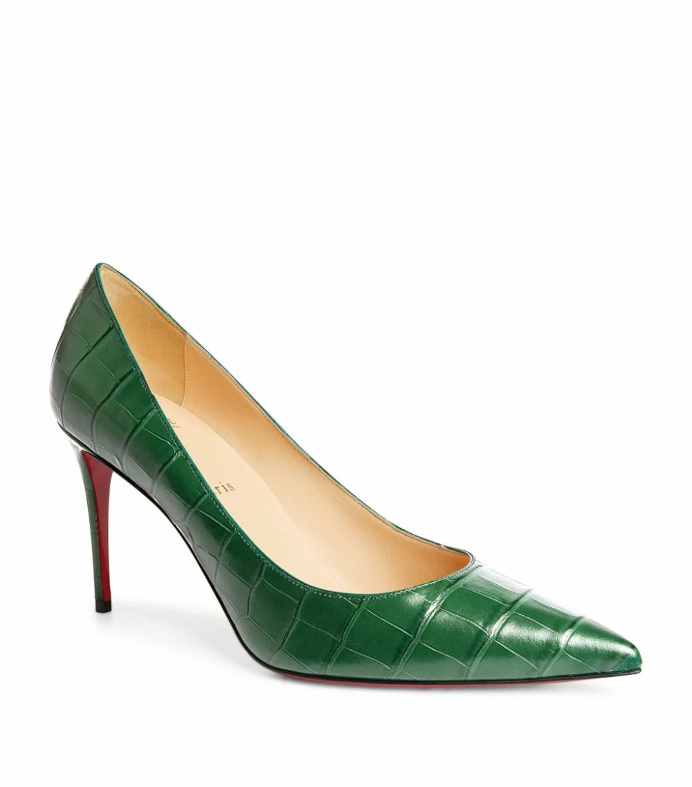 It was his assistant painting her nails that first gave Christian Louboutin the idea for the red lacquered sole, and the motif has since become one of fashion’s most distinctive symbols of exclusivity. When it’s partnered with the Kate pump – a sensual, sculptural silhouette defined by a stiletto heel and croc-embossed leather exterior – there’s simply no shoe that embodies the Maison’s aesthetic more.Please note, Christian Louboutin’s signature lacquered soles will wear out with use; this is normal wear and tear and is not considered to be a manufacturing defect. Please try these shoes on a carpeted surface, as any damage to the soles may prevent us from accepting returns.