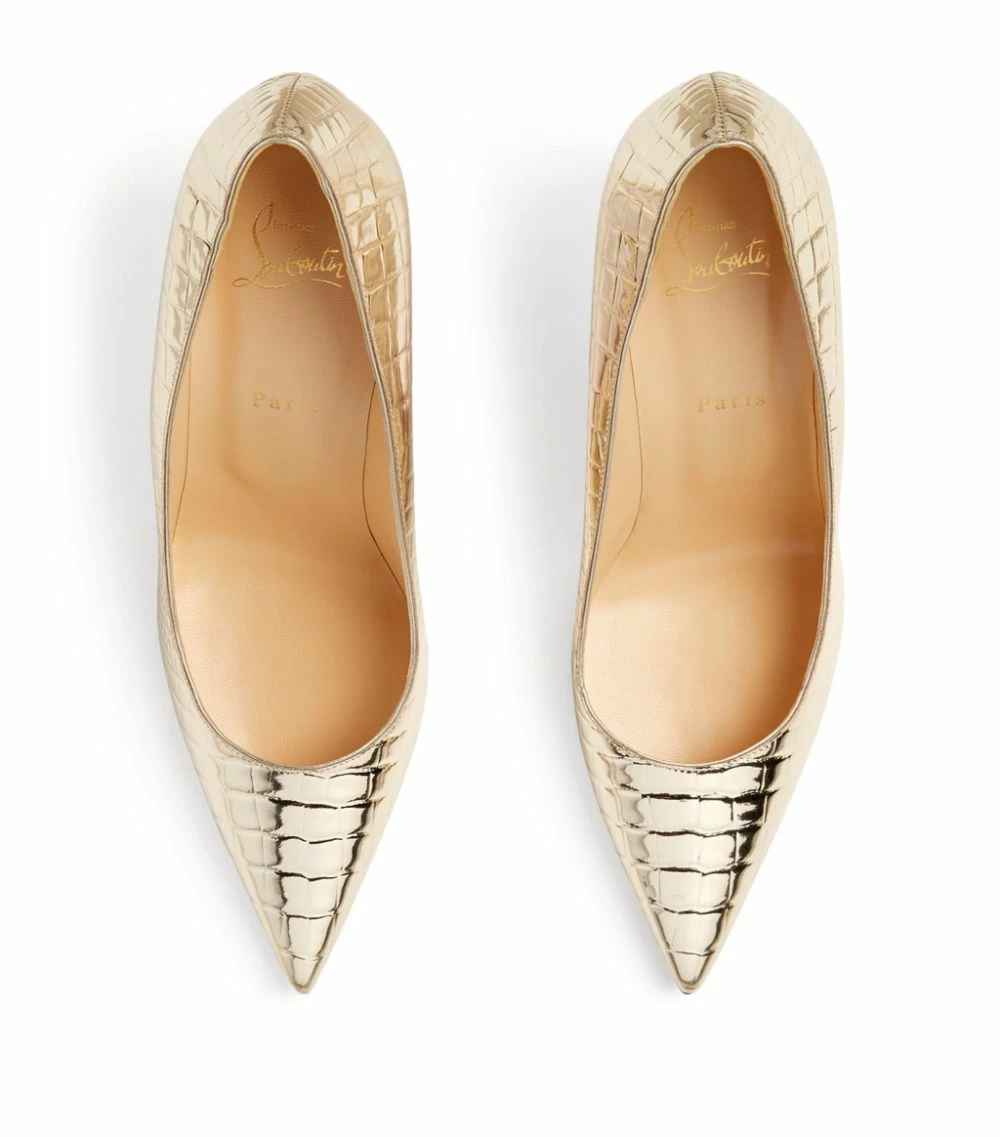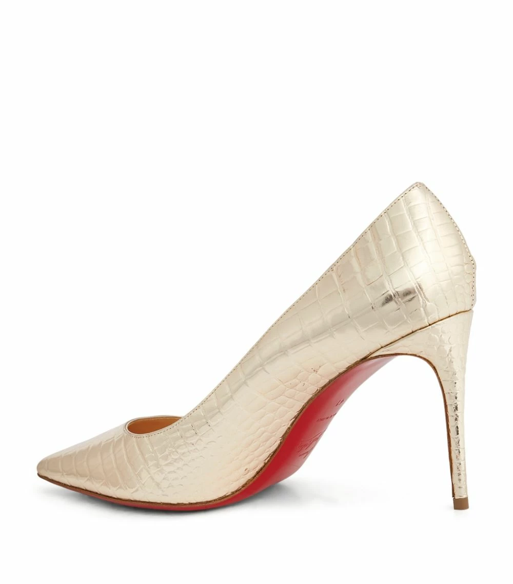 It was his assistant painting her nails that first gave Christian Louboutin the idea for the red lacquered sole, and the motif has since become one of fashion’s most distinctive symbols of exclusivity. When it’s partnered with the Kate pump – a sensual, sculptural silhouette defined by a stiletto heel and metallic, croc-embossed exterior – there’s simply no shoe that embodies the Maison’s aesthetic more.Please note, Christian Louboutin’s signature lacquered soles will wear out with use; this is normal wear and tear and is not considered to be a manufacturing defect. Please try these shoes on a carpeted surface, as any damage to the soles may prevent us from accepting returns.