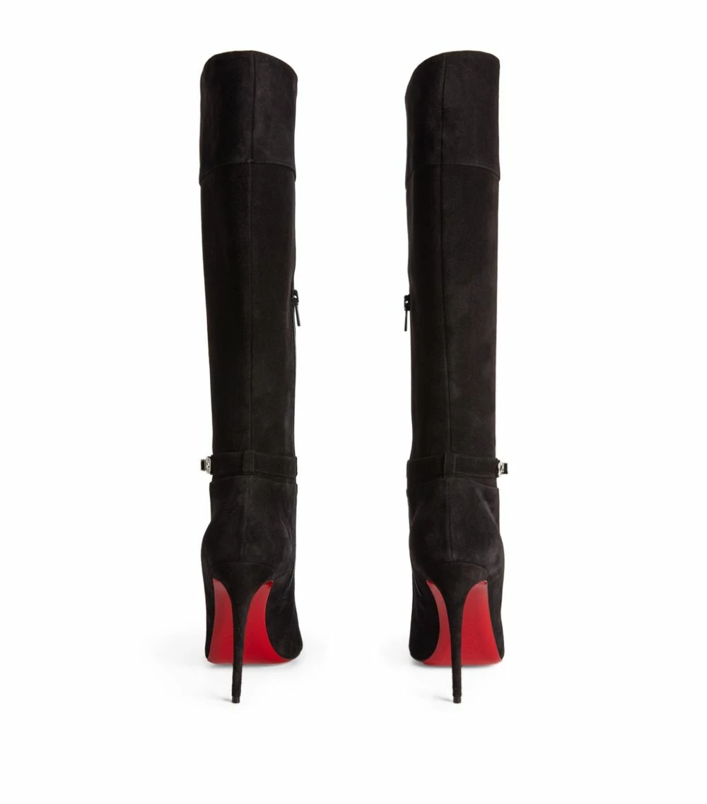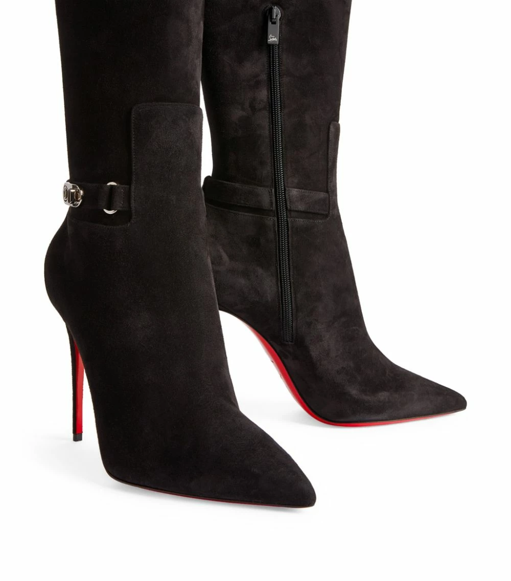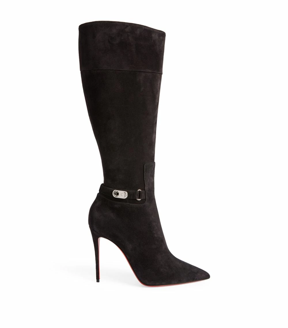 Christian Louboutin takes on a footwear classic with the Lock Kate boots. Crafted from smooth calfskin leather, their classic knee-high silhouette is elevated upon a stiletto heel, with a soft almond toe and concealed zip adding timeless appeal. Nevertheless, any anonymity is at once withdrawn at the sight of the style’s scarlet red soles – a signature that could only belong to the Parisian shoemaker.