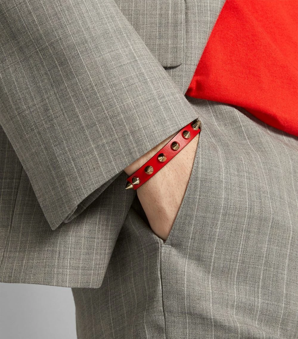 With Christian Louboutin’s studded toe caps being almost as iconic as the Maison’s red soles, it makes perfect sense that these particular embellishments define the Loubilink bracelet. Pointed and polished, the spikes are set upon a smooth calfskin backdrop that further enriches the design’s exquisite appeal.