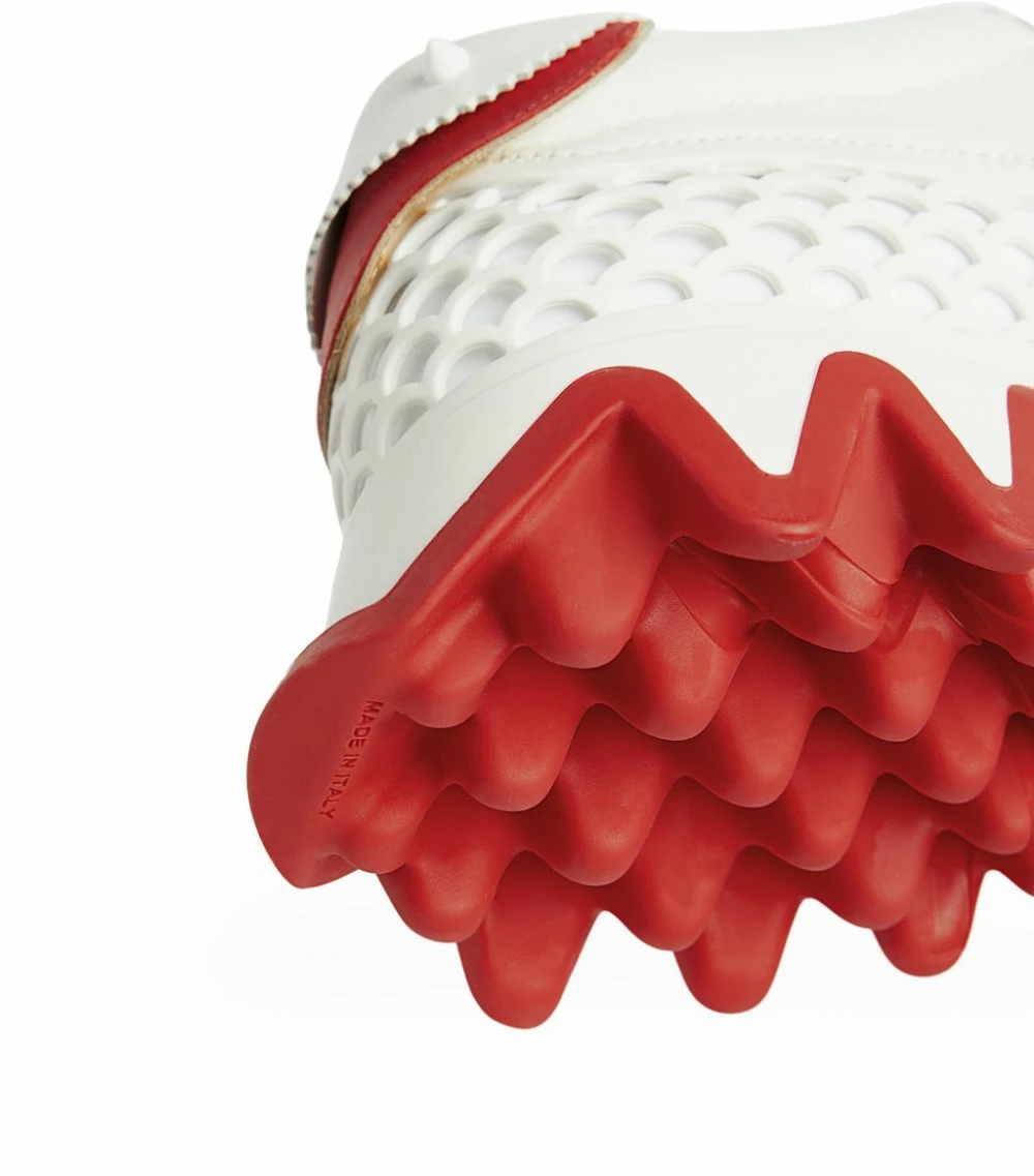 Christian Louboutin’s Loubishark sneaker is so iconic that its debut warranted a dramatic movie-style poster based, of course, on that of Jaws. Much like the film’s Great White, the sneakers boast a formidable set of teeth to their outsole, framed by flashes of signature red in a particularly punk-inspired touch. Elsewhere the runner-style silhouette is notably technical – rest assured that you’re treated to the utmost comfort as you flex the Maison’s most exaggerated, graphic and playful design yet.