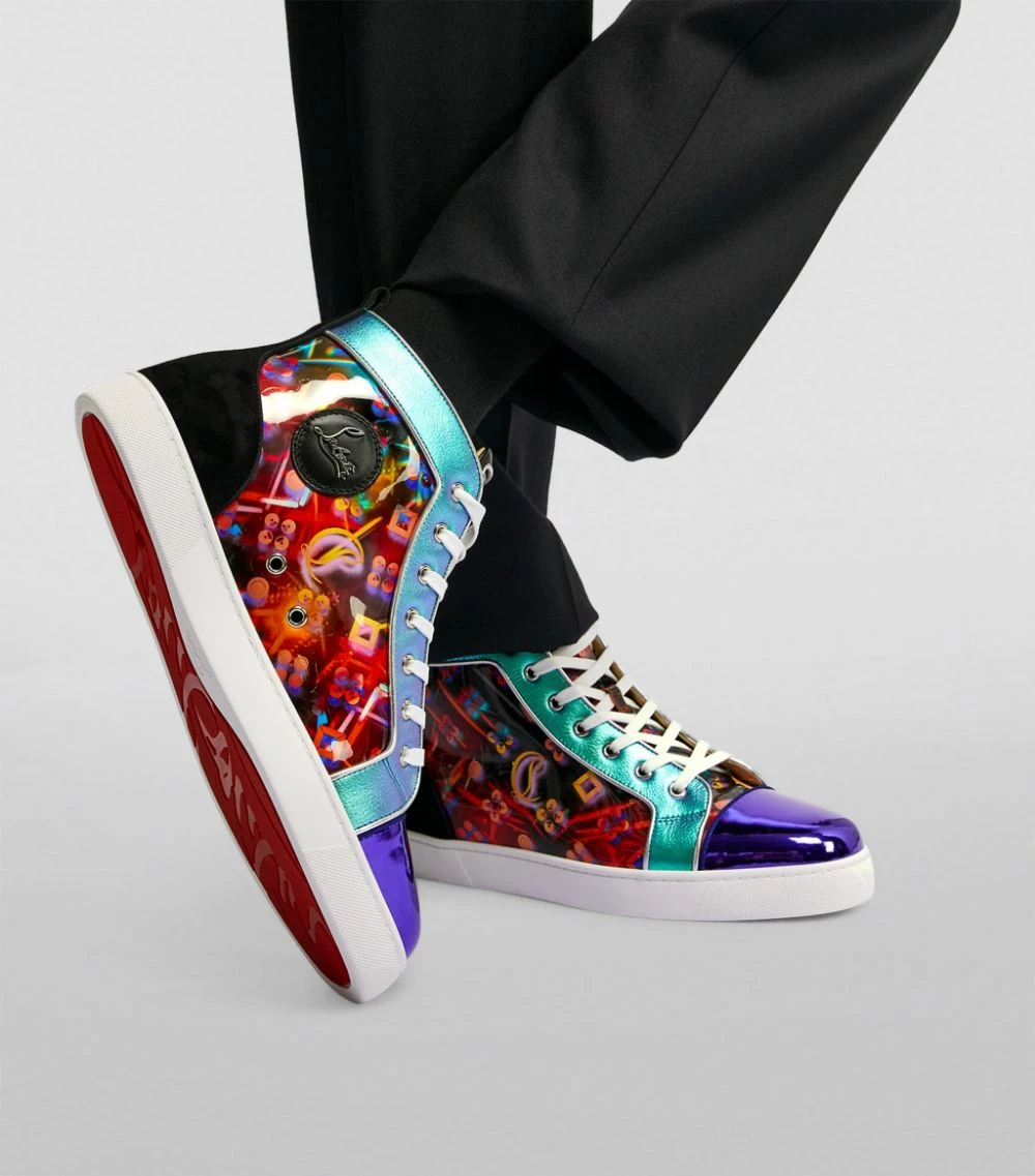 Representing a maximalist, extravagant take on a classic high-top silhouette, the Louis Orlato sneakers are rendered in colourfully printed leather – ideal for those who want all eyes pointed in their direction. Adorned with an enigmatic print and signature-stamped red sole, this eye-catching pair is characteristically Christian Louboutin.