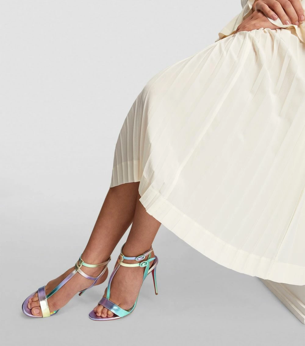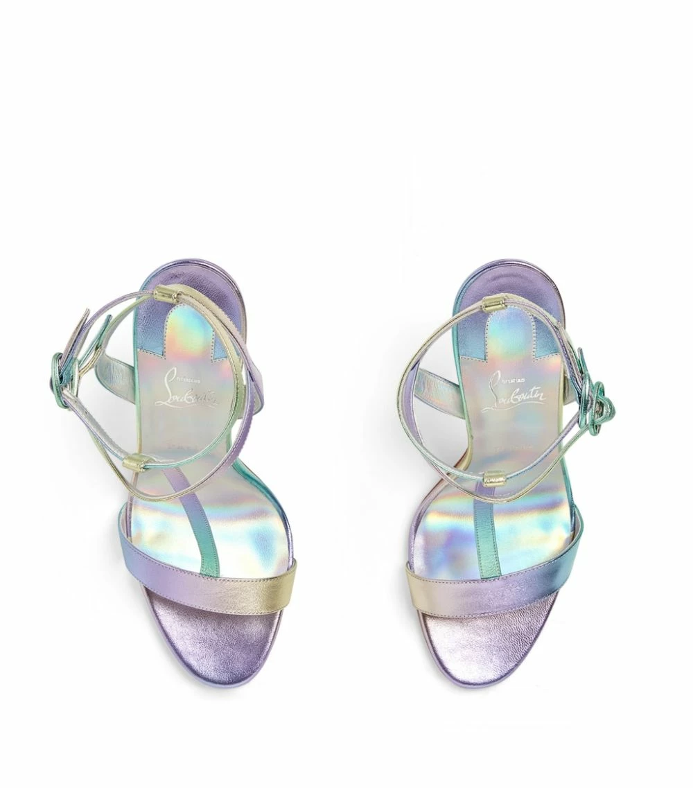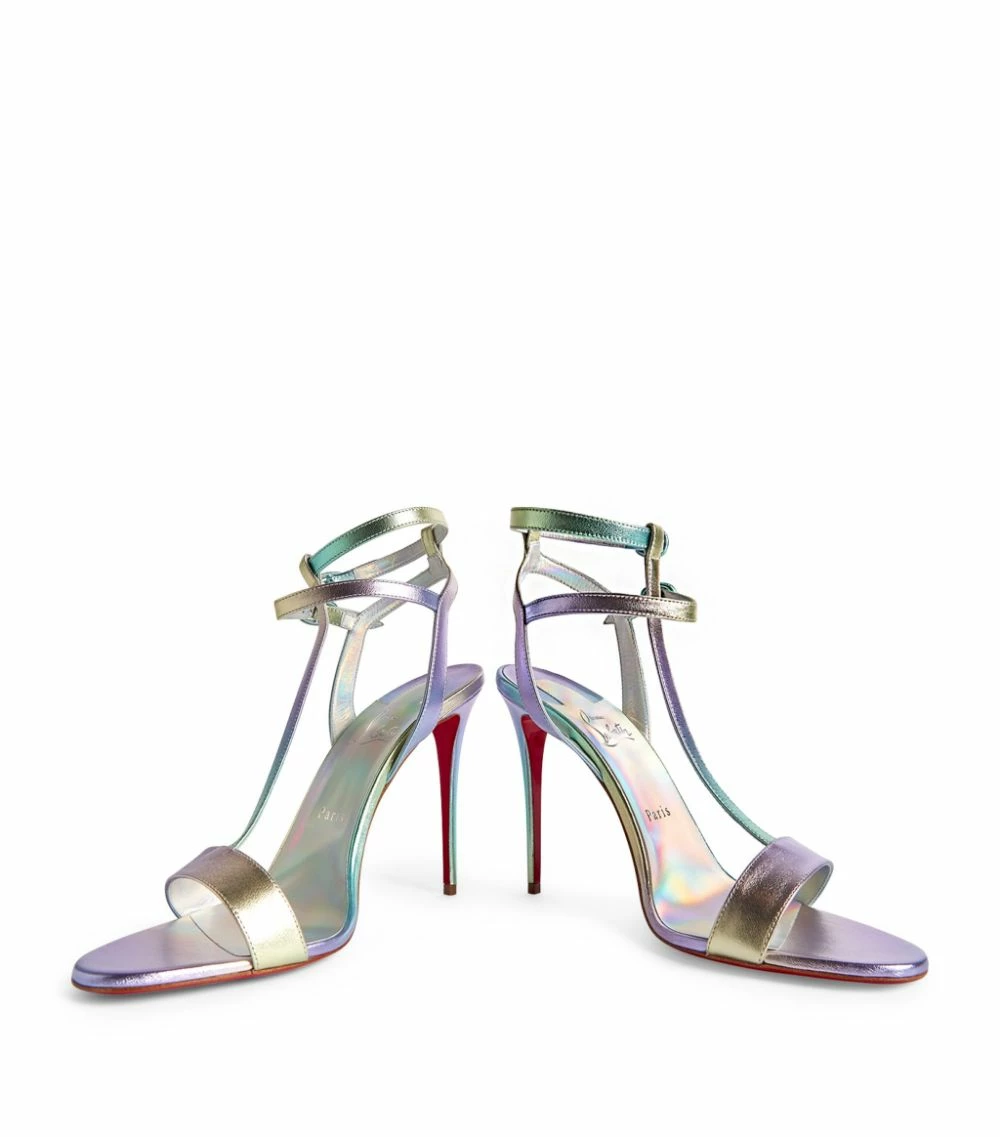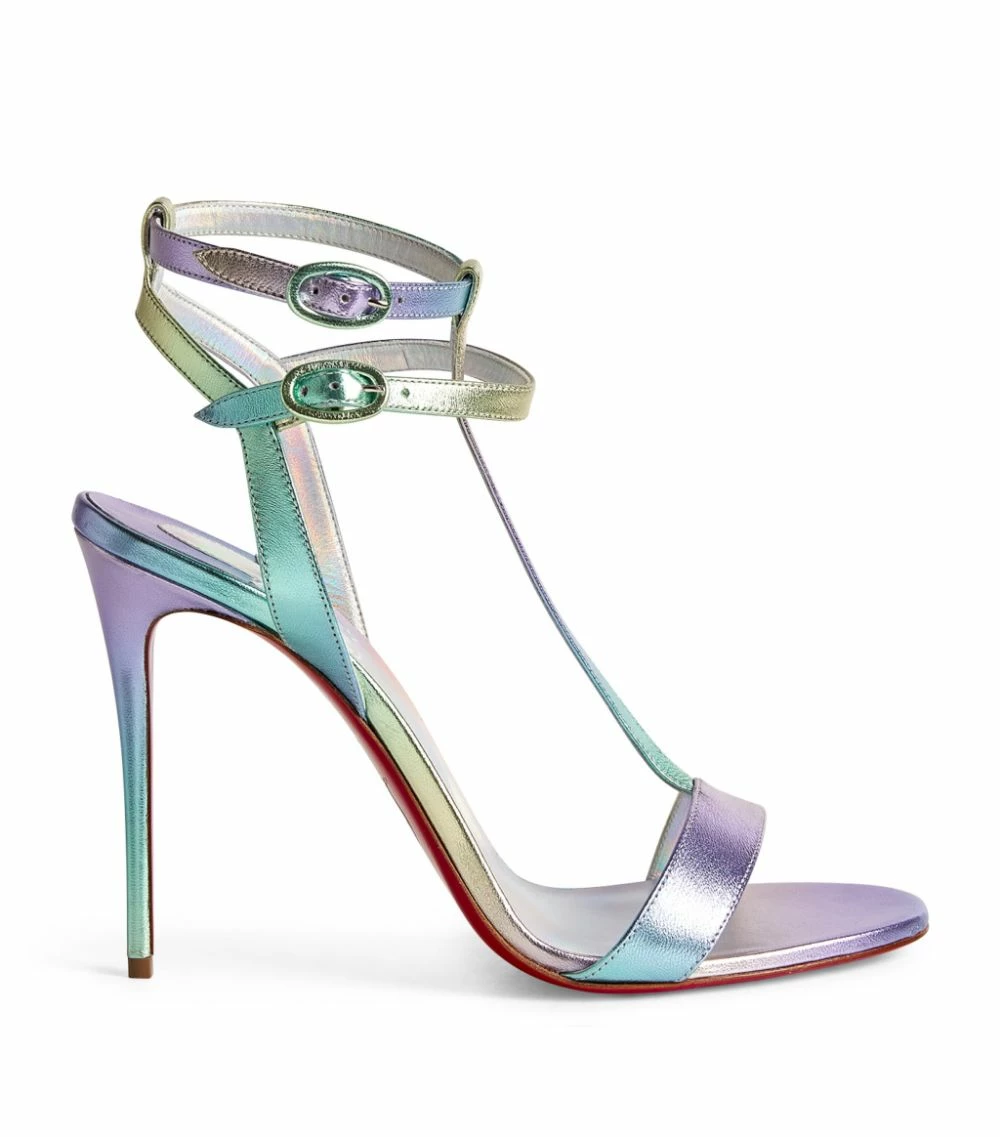 If you’re looking for a heel to capture the room, look no further than Christian Louboutin’s Mara heeled sandals. If towering above the competition on a stiletto heel wasn’t enough, they boast a patent leather composition that reflects the spotlight with its mesmerising iridescent effect. Finished with a double ankle strap, they’re designed to elongate the leg for a captivating touch.Please note, Christian Louboutin’s signature red lacquered soles will wear out when tried on a hard surface other than carpet; this is normal wear and tear and is not considered to be a manufacturing defect. Please try these shoes on a carpeted surface, as any damage to the soles may prevent us from accepting returns.