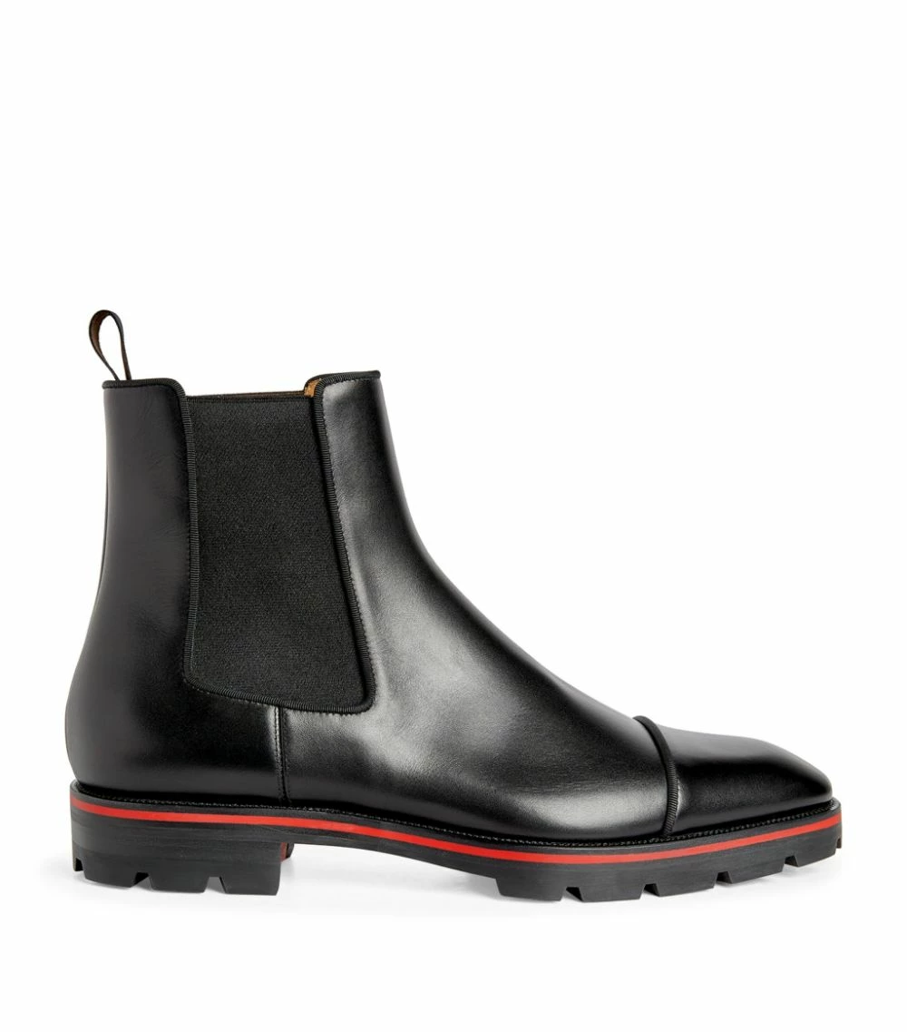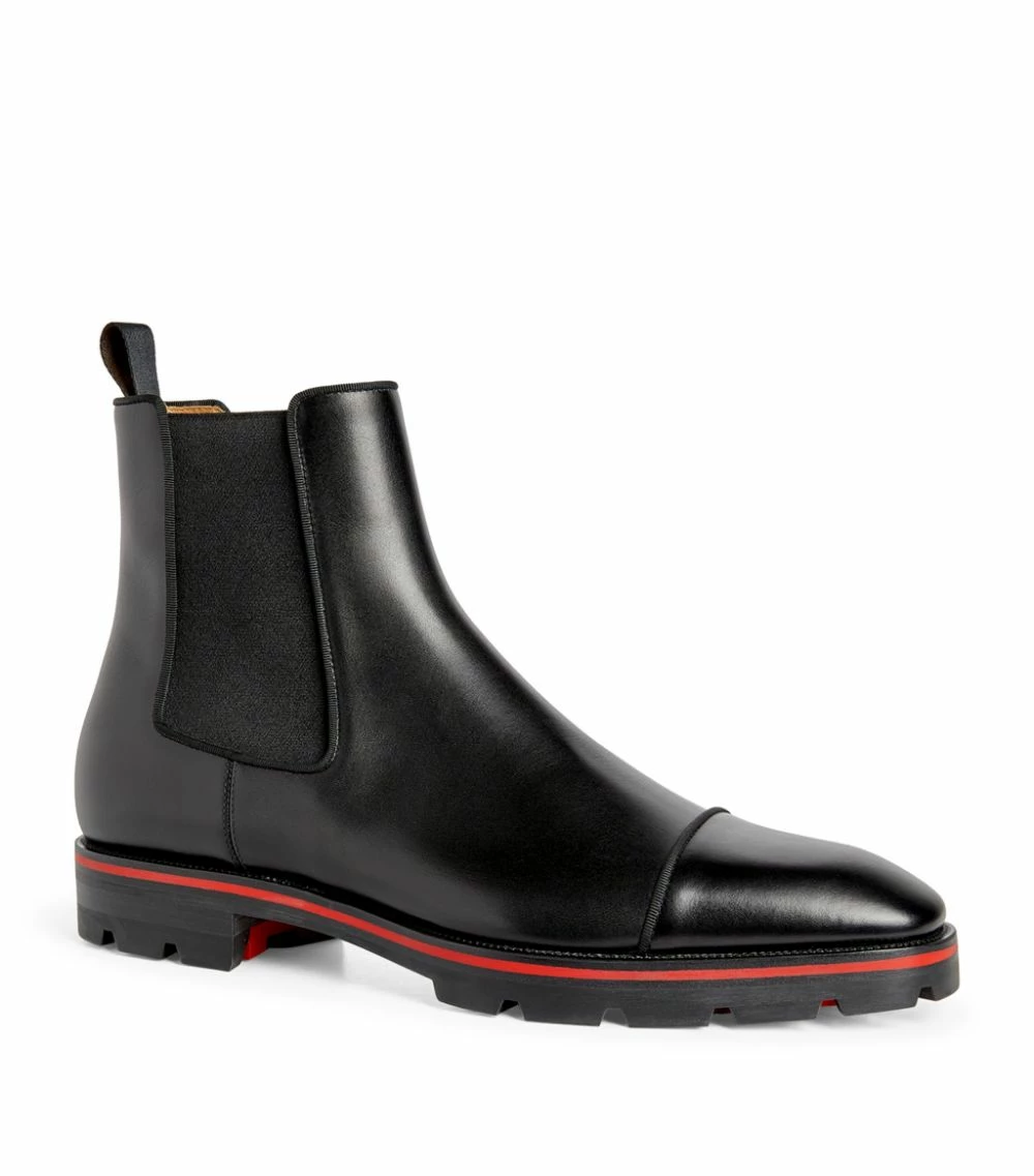 Putting its signature stamp on classic ankle boots, Christian Louboutin presents the Melon pair as the latest style to steal the hearts of fashion-conscious gentlemen. They’re imagined in premium leather with elasticated inserts and a signature red trim – a detail that delivers rock ‘n’ roll appeal. A pull-on-and-go staple, they’re destined to enhance your favourite jeans.Please note, Christian Louboutin’s signature lacquered soles will wear out with use; this is normal wear and tear and is not considered to be a manufacturing defect. Please try these shoes on a carpeted surface, as any damage to the soles may prevent us from accepting returns.
