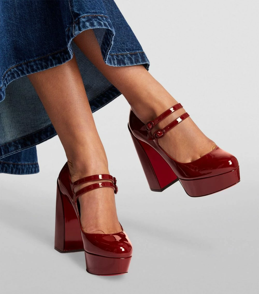 Embodying vintage charm from the ’70s, the Christian Louboutin Movida Jane platform pumps are nothing short of striking. Towering above the room on a statement platform and block heel, they provide a retro take on classic elegance for lovers of the disco era. Finished with a double buckle strap to the ankle, they take inspiration from T-bar sandals to elongate the leg, providing endless sophistication and character.Please note, Christian Louboutin’s signature red lacquered soles will wear out with use when tried on a hard surface other than carpet; this is normal wear and tear and is not considered to be a manufacturing defect. Please try these shoes on a carpeted surface, as any damage to the soles may prevent us from accepting returns.