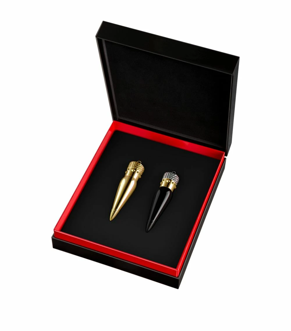 Inspired by Middle Eastern antiquities and the Art Deco movement, the opulent tubes which hold Christian Louboutin’s Silky Satin lipsticks are a true sight to behold, breaking with traditional shapes with their vial-like metal bodies. In this gift set, two of the label’s signature Rouge Louboutin shades reside within a plush presentation box, complete with a flash of iconic red to the inner trim.