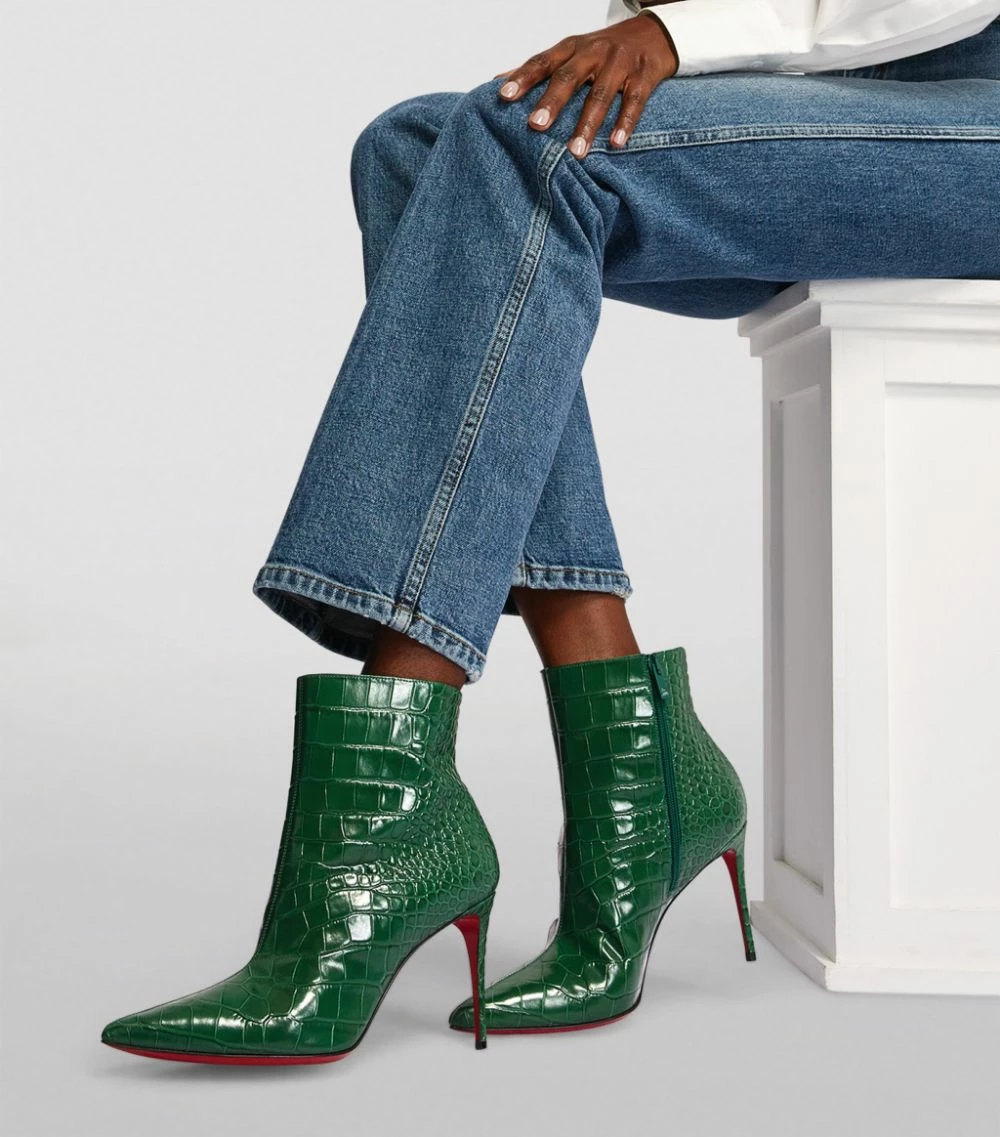 Exemplary of the Parisian designer’s attention to detail, construction and fabric, the So Kate boots from Christian Louboutin are crafted from polished croc-embossed leather. Elegantly sculpting the foot with its curved, pointed profile, the design sits atop a confident stiletto heel – giving us a glimpse of the signature red sole – that calls to be styled with calf-length separates; take cues from our stylists and pair with a floaty midi skirt to let your shoes lead the way.Please note, Christian Louboutin’s signature lacquered soles will wear out with use; this is normal wear and tear and is not considered to be a manufacturing defect. Please try these shoes on a carpeted surface, as any damage to the soles may prevent us from accepting returns.